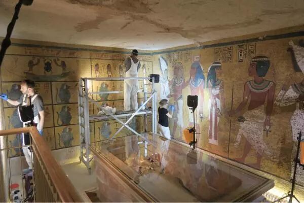 在古埃及,王室的墓穴常常会充满了死者在来世可能需要的物件,但都是木制微型模型,模型船及其模型船员旨在满足国王的捕鱼和运输需求。两个月前,保护人员完成了长达十年的图坦卡蒙墓穴修复工作,他们评估了壁画的损坏情况而且还安装了呼吸机等新系统,以防止这个访问量巨大的考古遗址的退化。
