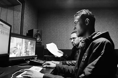 图为埃及配音演员为电视剧《鸡毛飞上天》进行译配工作。肖天祎供图/光明图片
