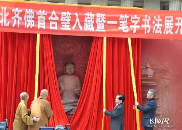 下午4时许,星云大师等为修复好的北齐幽居寺释迦牟尼佛造像揭幕。当红色幕布缓缓拉开,经过修复、佛首佛身已重新完美合为一体的庄严佛像出现在大家眼前的时候,现场掌声雷动,很多人激动得热泪盈眶。