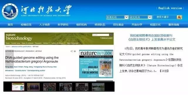 5月2日,河北科技大学青年教师韩春雨作为通讯作者的研究论文《DNA-guided genome editing using the Natronobacterium