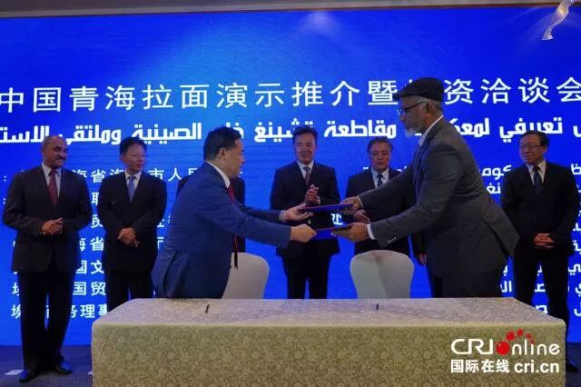 在海东市委书记鸟成云、中国驻埃及使馆经商参处公参韩兵、埃及国家旅游部前部长顾问纳赛尔等中埃嘉宾的共同见证下,中埃企业家在推介会现场签订了多份在埃投资开办青海拉面品牌店的意向性合作框架协议。
