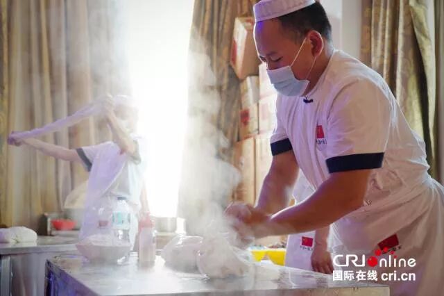 来自青海省的面点师在现场表演精彩的中国拉面技艺