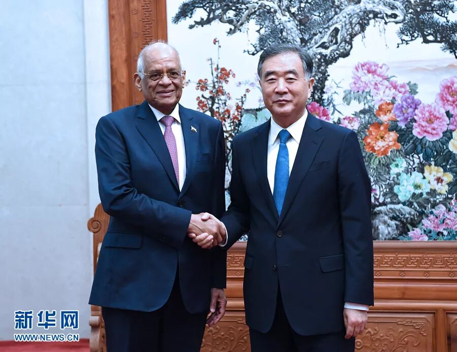 6月18日,全国政协主席汪洋在北京人民大会堂会见埃及议长阿里。新华社记者 饶爱民 摄