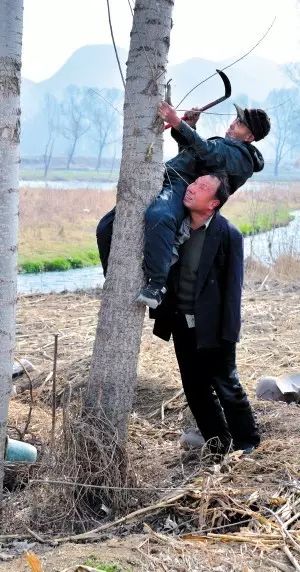 为了省下买树苗的钱,贾文其就把贾海霞扛在肩头上,把大树上的小树枝砍下来,作为树苗。