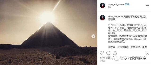 陈慧敏的长文中,对具体的事发经过也做了表述。她说11月26日去了雅典,在这样极富有历史文化氛围的城市,对于一个创作者来说是不可多得的体验。11月27日,她到了土耳其,而在土耳其的时间里,对于刚到开罗时所遭受的事情让她难以忘怀。那段难以提及的悲剧让她久久不能平静,随即临时决定买机票离开。
