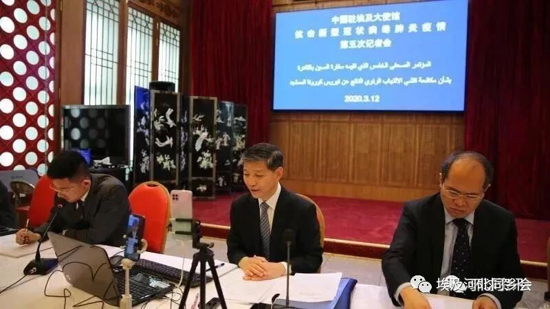 3月12日,中国驻埃及大使馆就抗击新冠肺炎疫情举行第五次记者会