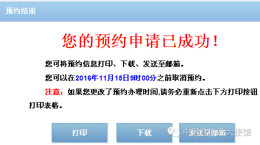请打印带有预约条码的申请表,准备相关材料,至此预约工作顺利完成。