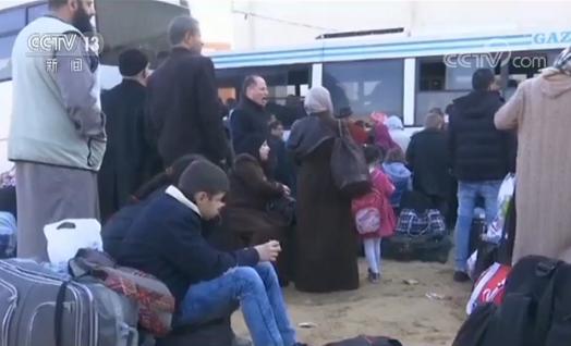 16日当天,拉法口岸挤满了排队等待通关的民众,他们需要在这里办理通关许可,然后乘坐大巴通过拉法口岸进入埃及境内。