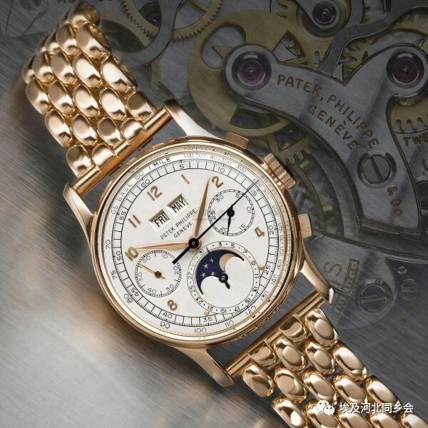 这块百达翡丽1518系列手表是1944年生产的,镶有一枚古埃及皇家羽饰,带有万年历和记时计。据说瑞士这家享有盛誉的钟表制造商只生产了281块同款手表。