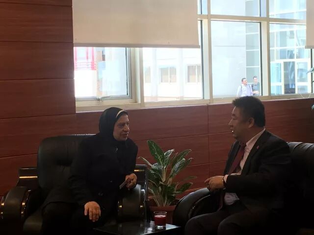 4月19日,驻埃及使馆文化参赞兼开罗中国文化中心主任石岳文在开罗拜会了埃及中国大学校董事会主席凯莉迈女士和校长阿什拉夫先生,双方进行了友好会谈。